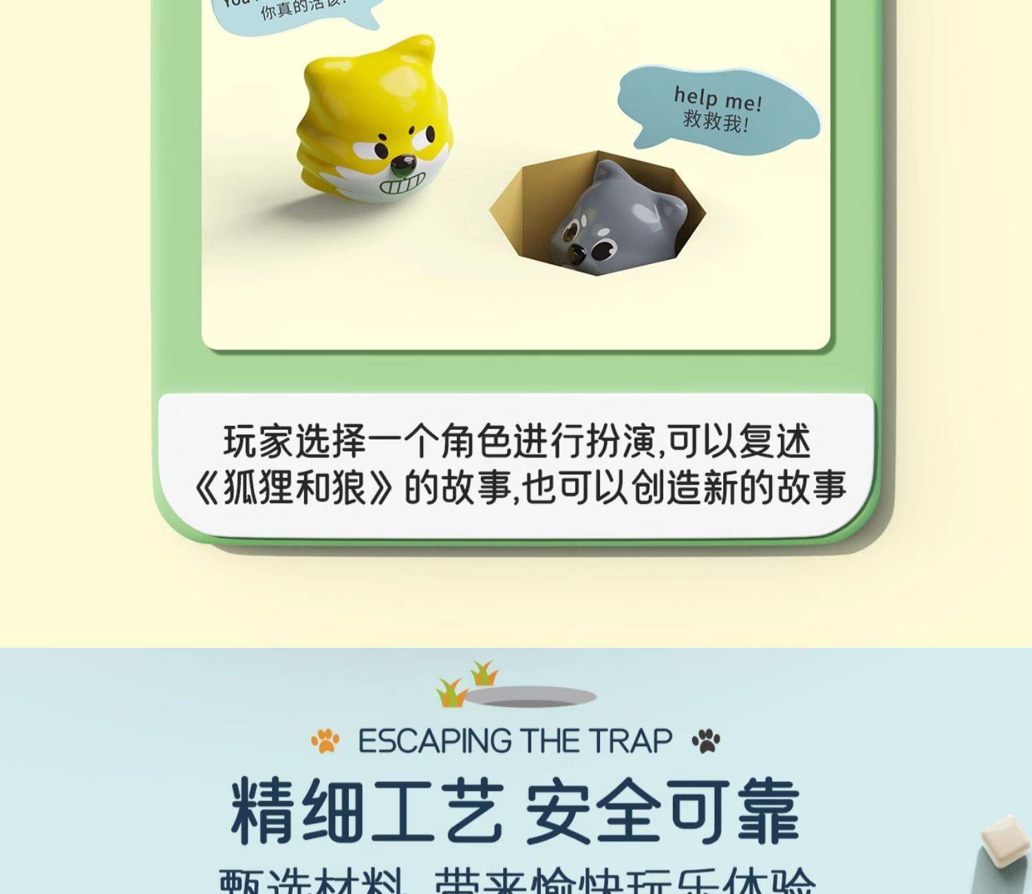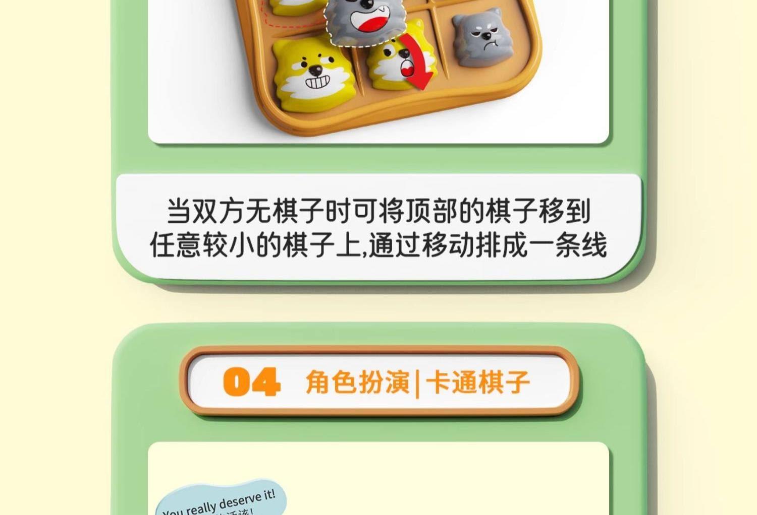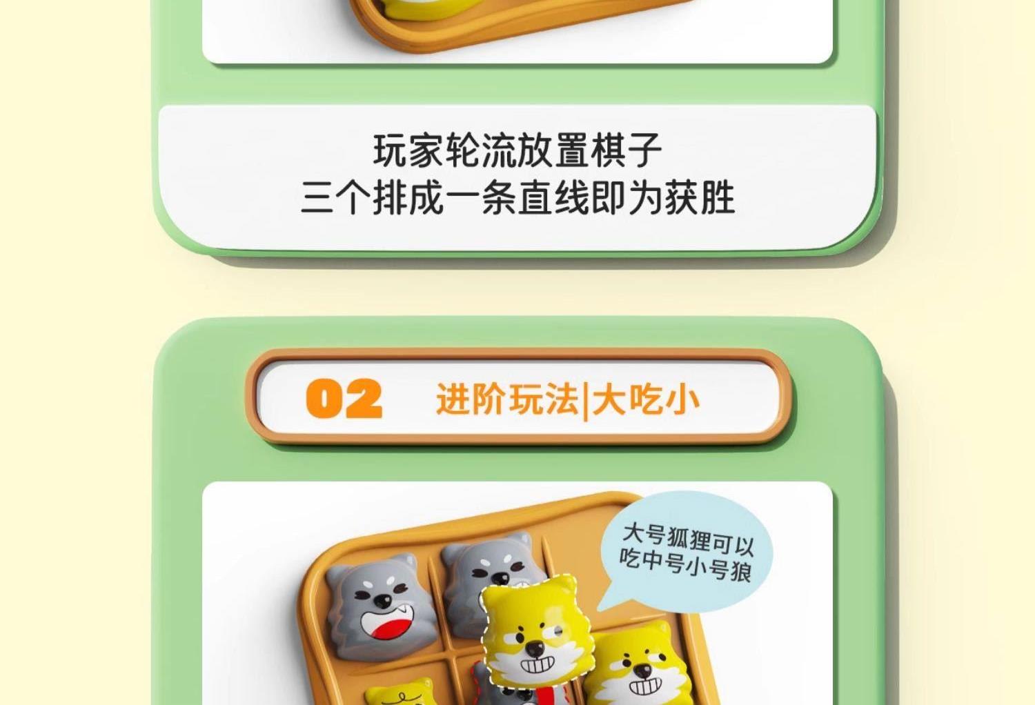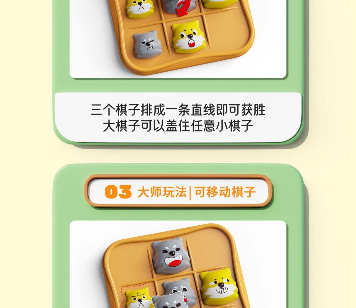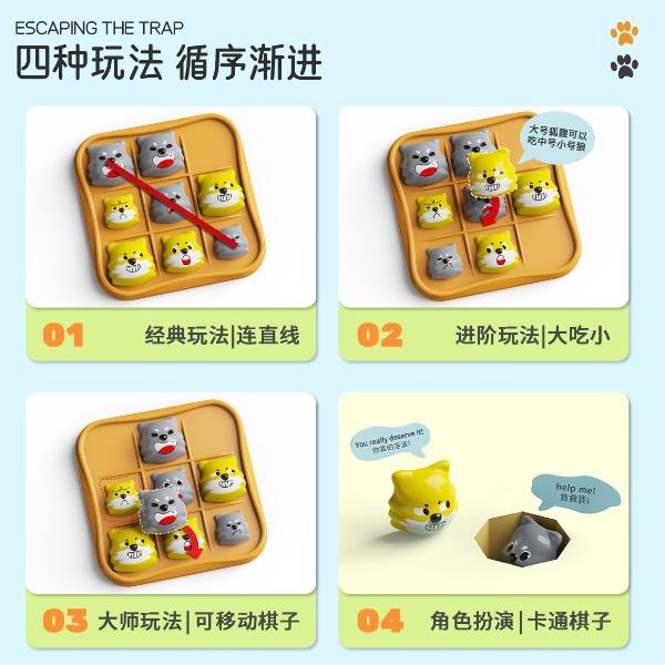 適用年齡:3+ 包裝尺寸 (cm):17*5*17 產(chǎn)品尺寸 (cm):17*5*17 產(chǎn)品材質(zhì): 塑膠 包裝方式: 彩盒 外箱尺寸 (cm):55*37*55 凈重(kg):10.5 毛重(kg):12.1 箱量: 60 萌趣棋子演劇情,用小黃狗智斗大灰狼的趣味劇情,把傳統(tǒng)棋類玩出新鮮感。4 種玩法進(jìn)階玩,雙人對(duì)戰(zhàn)嗨享親子時(shí)光。