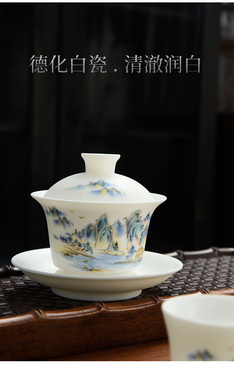 瓷伽什萬里山河羊脂玉茶具(亮面)