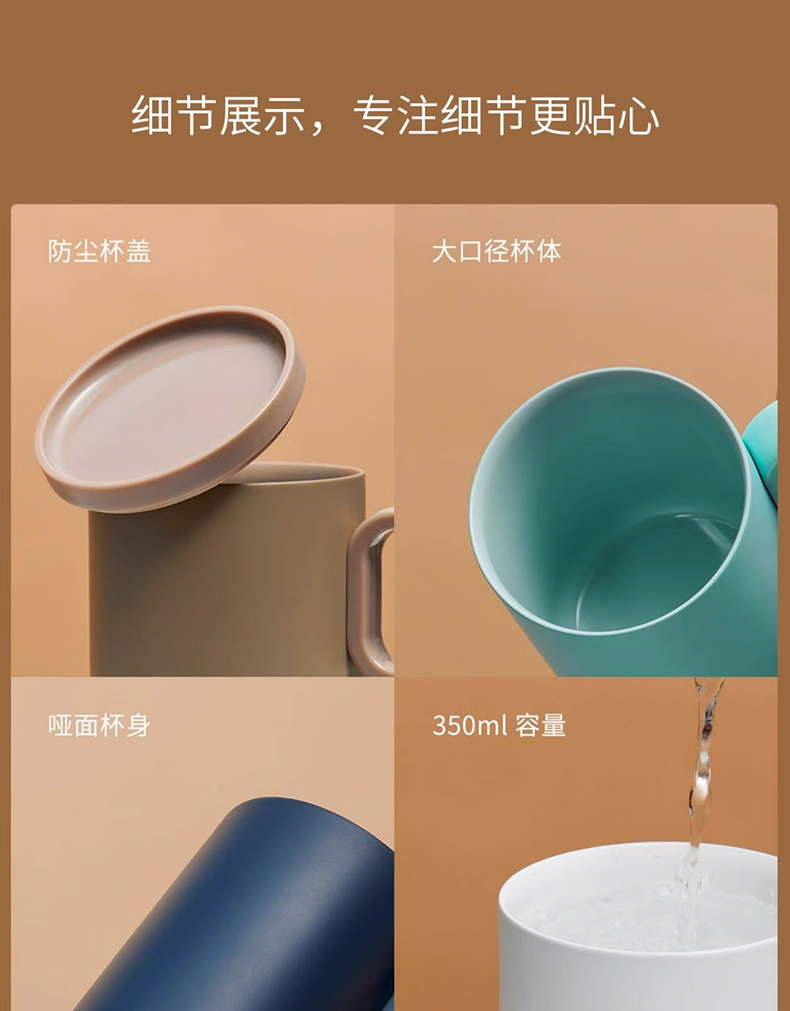 4、啞面杯身 + 防塵杯蓋+大口徑杯體,注重細節更貼心。