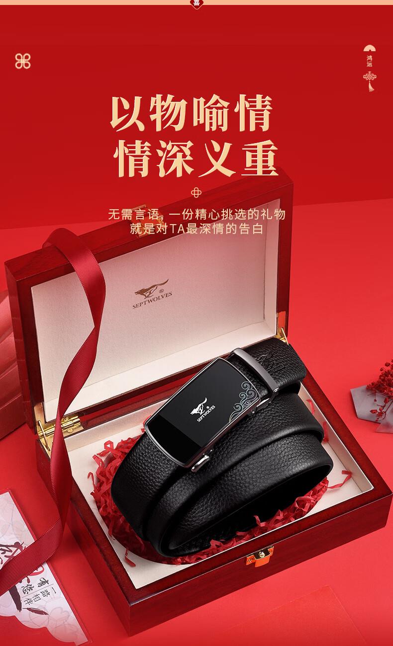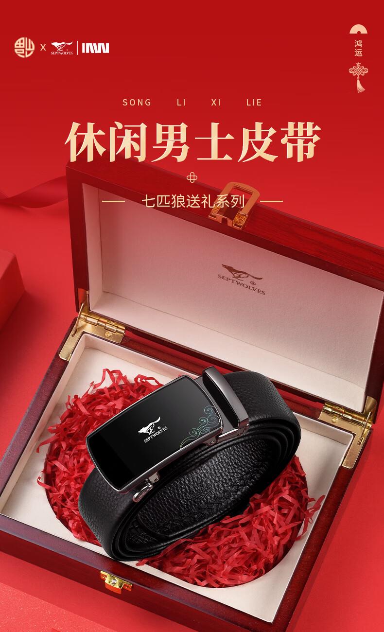 七匹狼皮帶男士2026新款頭層牛皮自動扣腰帶A1649-1 禮品已成功加入PPT!