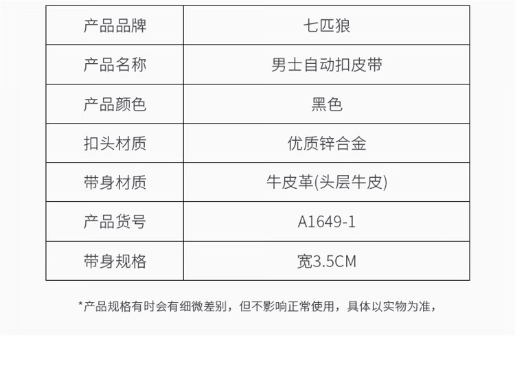 七匹狼皮帶男士2026新款頭層牛皮自動扣腰帶A1649-1 七匹狼皮帶男士2026新款頭層牛皮自動扣腰帶A1649-1