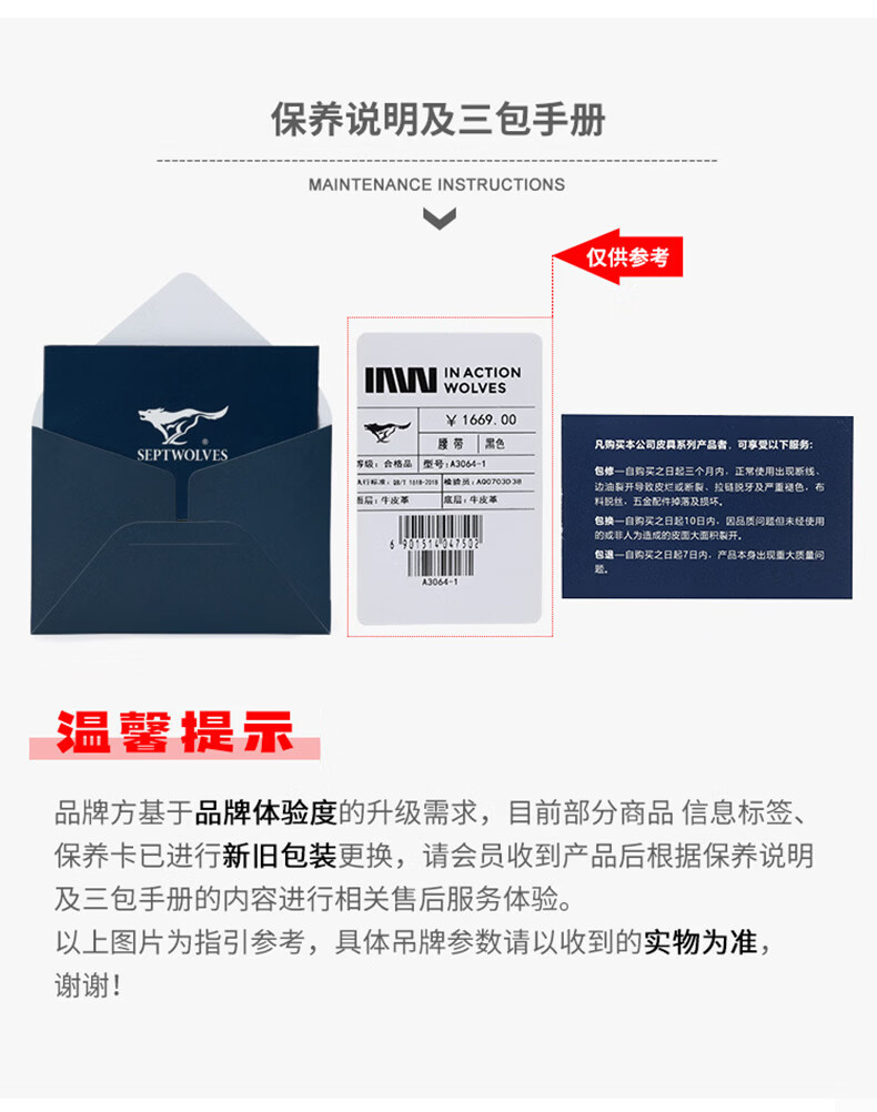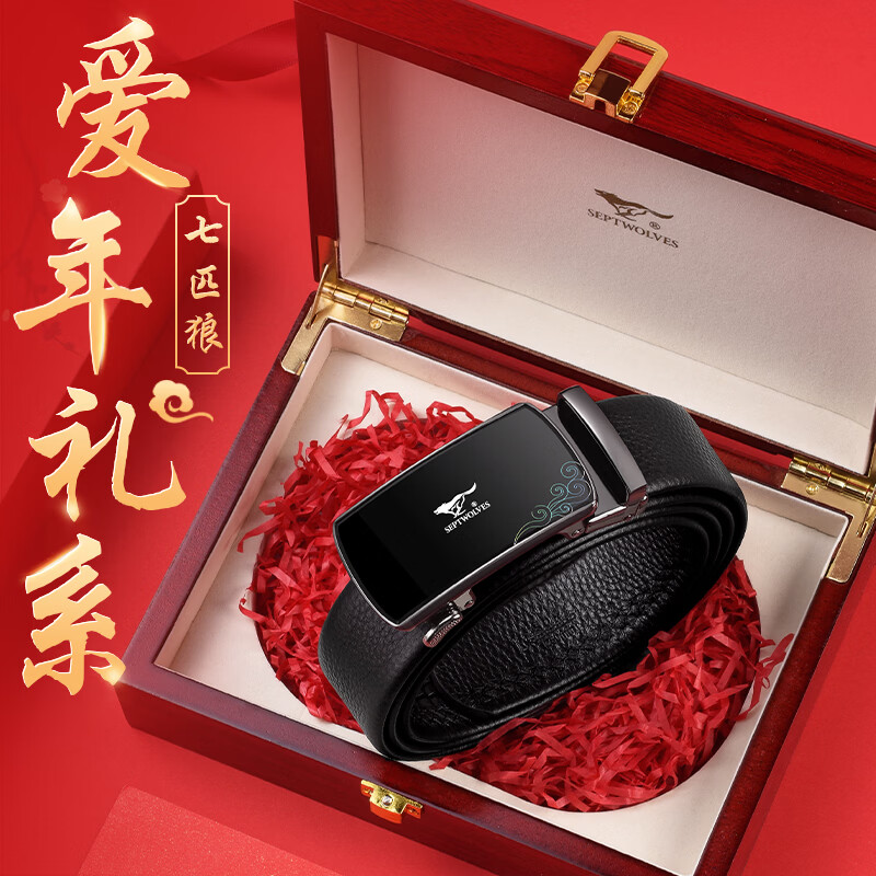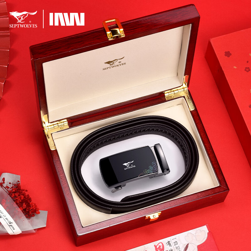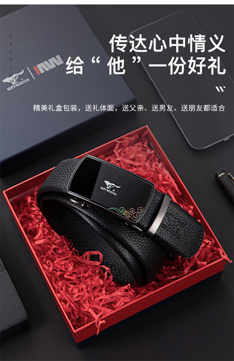 工藝:光面 帶扣:自動扣 主體材質(zhì):頭層牛皮 帶扣材質(zhì):合金 風格:通勤風 商務(wù)風 寬度:3.5CM 送愛人,送長輩,送男士 時尚設(shè)計扣頭,經(jīng)典個性,簡約百搭,磨砂背扣,材質(zhì)柔軟,手感舒適,經(jīng)典狼標LOGO 代寫賀卡,傳遞心聲,精美禮盒,送禮佳品
